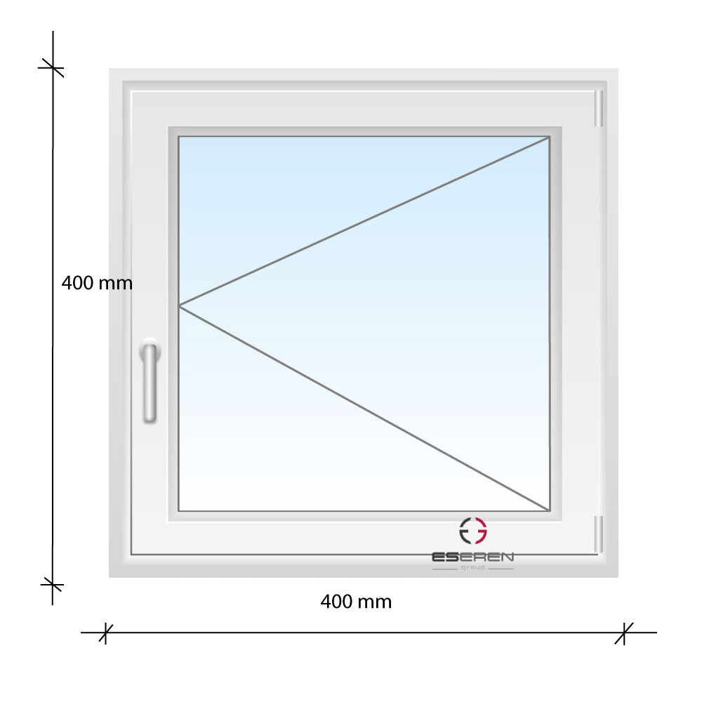Egyszárnyú nyíló ablak 40×40 cm tényleges mérettel, ESEREN profilból, 2 rétegű üvegezéssel.