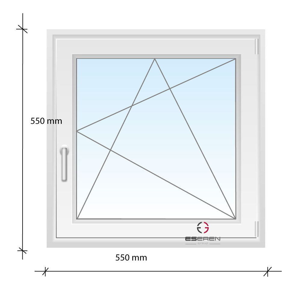 Egyszárnyú bukó-nyíló ablak 55×55 cm tényleges mérettel, ESEREN profilból, 2 rétegű üvegezéssel.